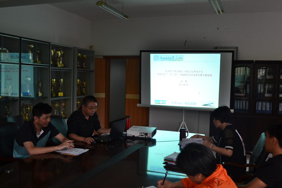 根据中央部署和校党委工作安排,6月4日下午14:00,体育学院在学院二楼会议室召开“三严三实”专题教育动员部署暨专题党课学习会。学院全体教工党员和学生党员参加了会议。学院党总支书记王勇同志主讲题为《扎实学习努力践行内化于心外化于行》的 “三严三实”专题党课,并就学院“三严三实”专题教育工作进行了部署。动员部署暨专题党课学习会历时一个小时。